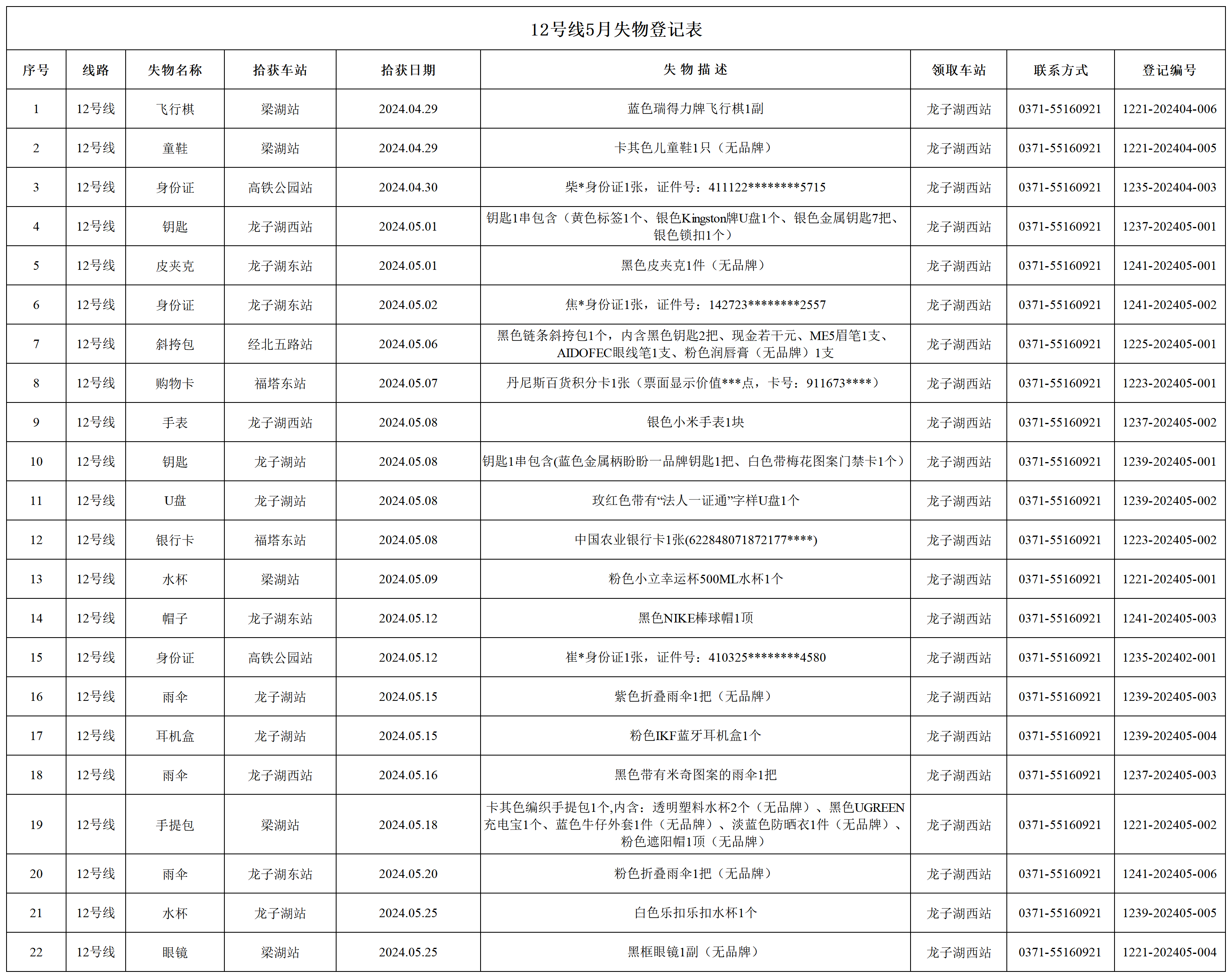 2024年4月28日—2024年5月28日車站無(wú)人認(rèn)領(lǐng)失物情況