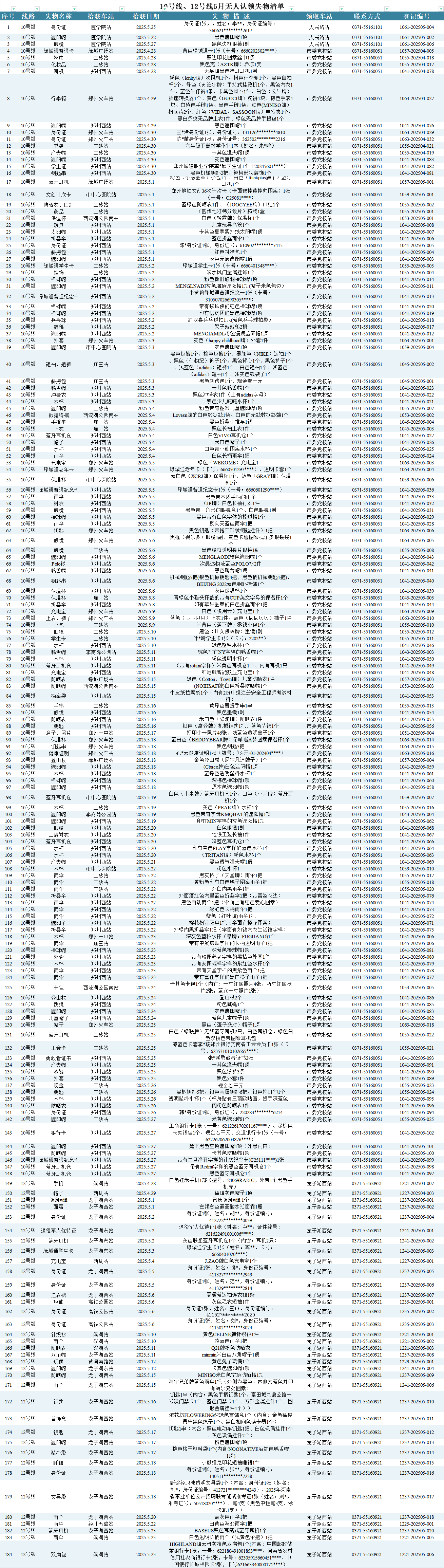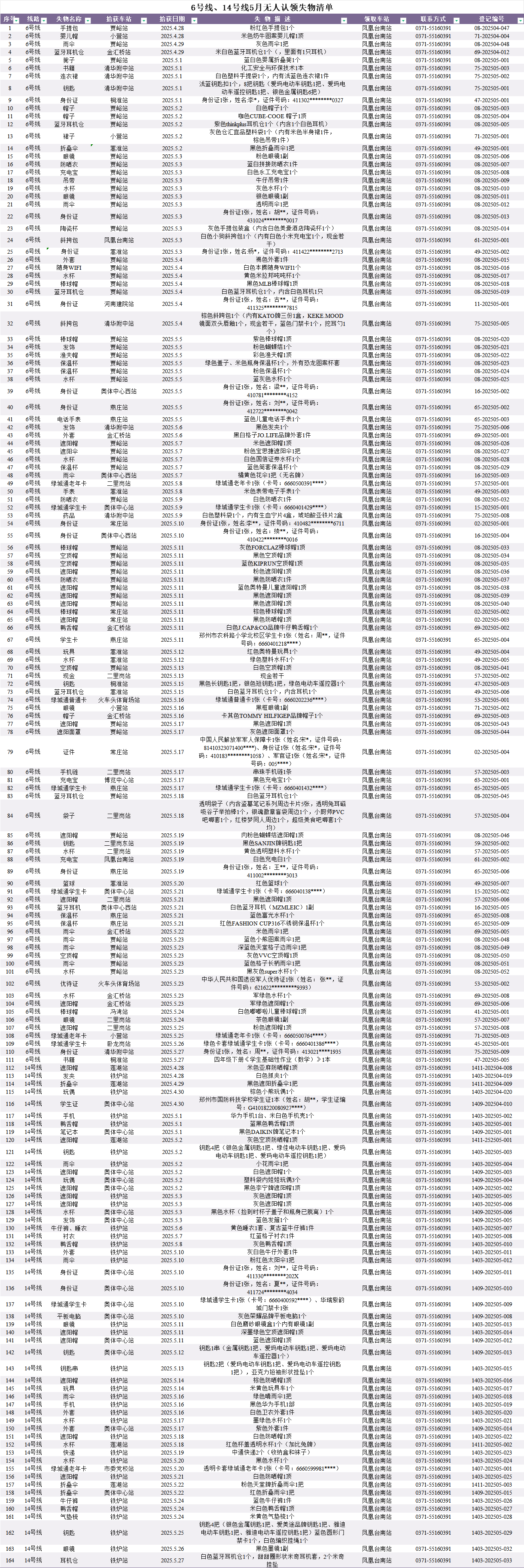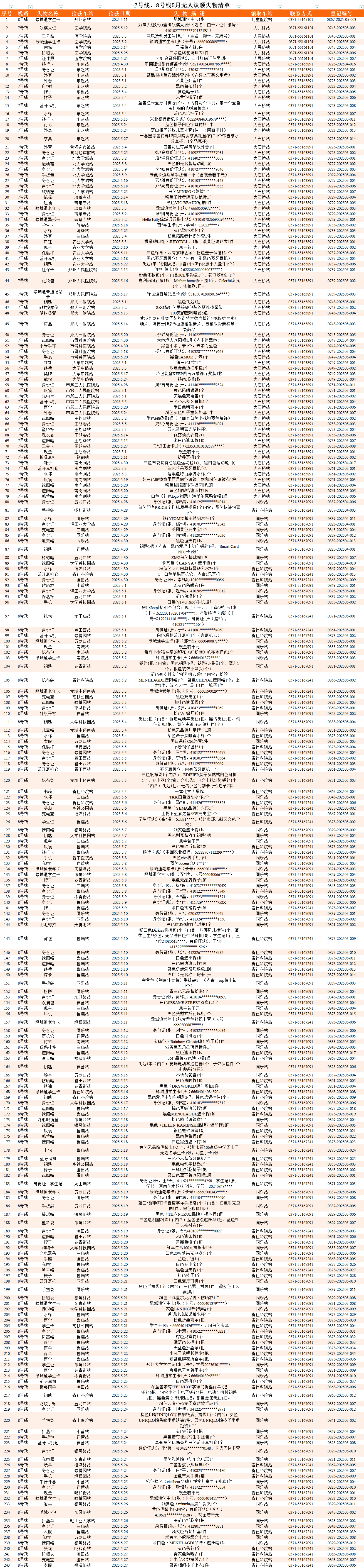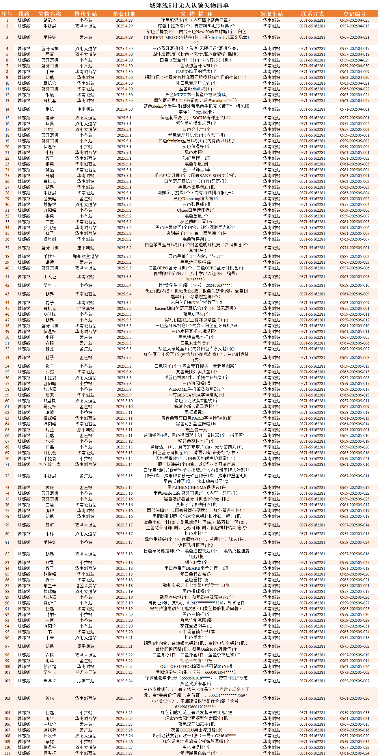 2025年4月28日—2025年5月28日車站無人認(rèn)領(lǐng)失物情況